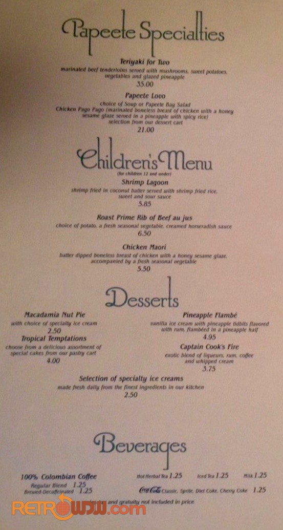 Home » Pictorial Souvenir » WDW Dining, Recreation & Entertainment » Walt Disney World Menus Gallery